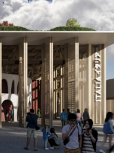 lcantara impreziosisce il Padiglione Italia con tendaggi che ricordano i noren giapponesi